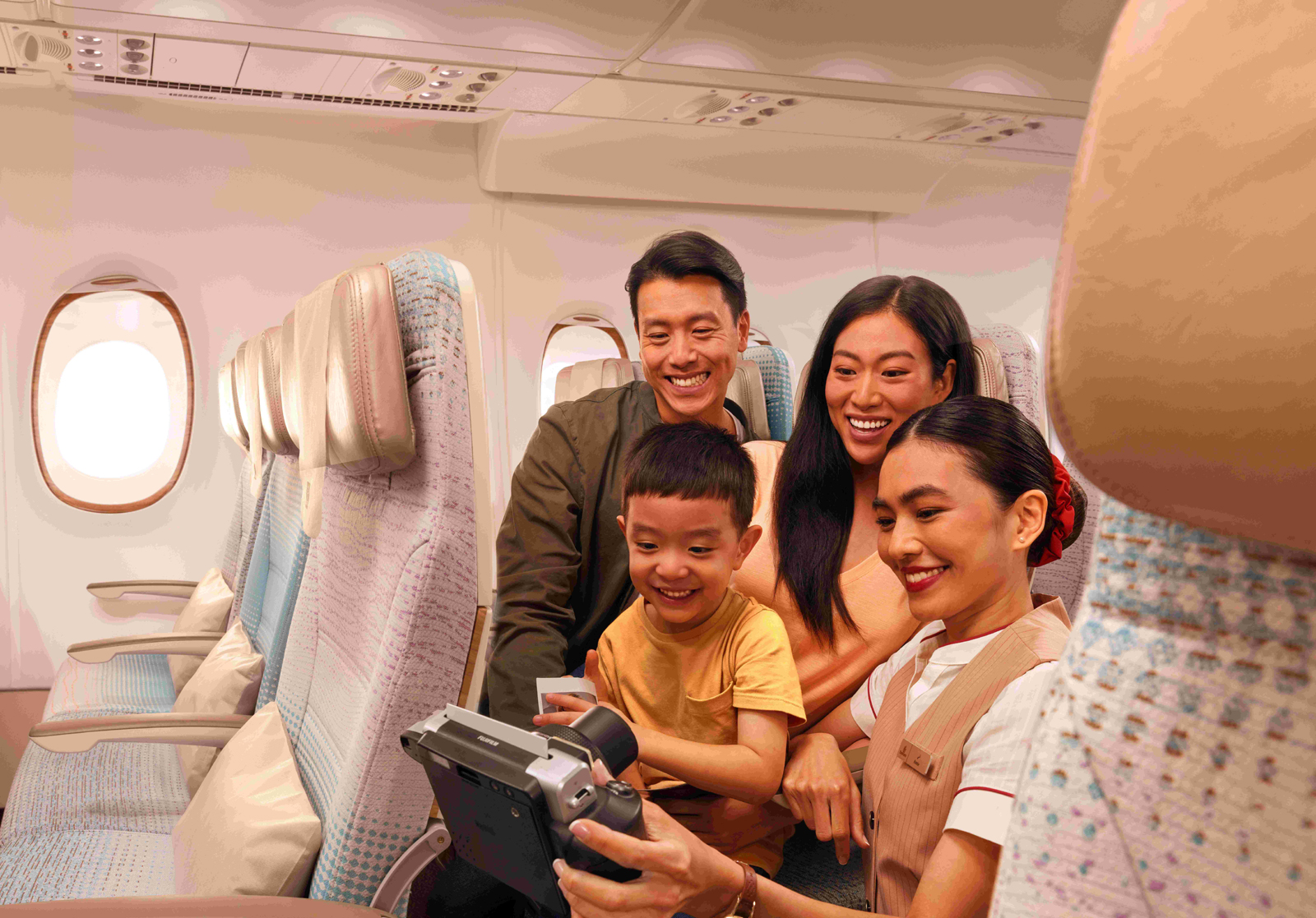 Emirates filosundaki birçok uçak, 5 milyar dolarlık yenileme programı kapsamında yeni nesil koltuklar, tamamen yenilenen iç mekânlar ve modern tasarım anlayışıyla donatıldı. Emirates, tüm uluslararası havalimanlarında ailelere öncelikli biniş imkânı sunarak çocukların koltuklarına daha rahat yerleşmesine olanak tanıyor. Havayolunun aileleri birlikte oturtma politikası kapsamında, iki yaş ve altı ile 11 kilogramın altındaki bebekler için beşik bulunan koltuklar önceden rezerve edilebiliyor. Ayrıca, onaylı çocuk oto koltuklarının uçak içine alınmasına da izin veriliyor.