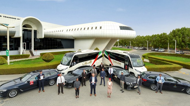 Emirates BAE'de, mürettebatına ve diğer çalışanlarına iş yerine geliş gidiş hizmeti sunmak için binden fazla araçtan oluşan bir filo işletiyor ve bir yılda ortalama 2,5 milyon karayolu seyahati gerçekleştiriyor. Emirates ayrıca, özel Şoförlü Araç Hizmeti kapsamında, hizmet sağlayıcıların premium müşterilerin havalimanına konforlu ve güvenli şekilde geliş ve gidişini sağlaması için standartlar ve protokoller uygulamakta.