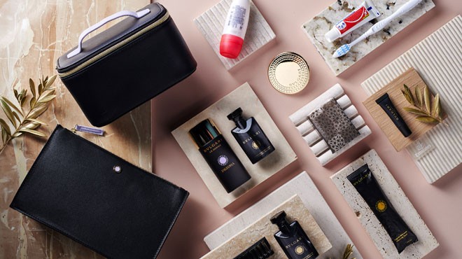 2023’ün en şık modellerinden biri olan gümüş renkli Business Class serisi, her ikisi de vegan deriden leylak vurgulu göze çarpan metalik gümüş tonda yapılmış bir kese ve bir klasik makyaj çantası olmak üzere iki farklı model sunuyor. Her kit, ikonik parfüm BVLGARI OMNIA Amethyste Eau de Toilette dahil olmak üzere birkaç Bulgari ürünü içeriyor. Parfüm, pembe greyfurt ve yeşil bitki özü akorlarının parlak, narenciye yönleriyle açılırken; ana notaları zengin Damascena Rose Absolute kokusunu ortaya çıkarıyor. Yolculara ayrıca ciltlerini nemli tutmak için tamamlayıcı bir Omnia Amethyste yüz ve vücut emülsiyonu sunulurken, kit aynı zamanda; Bulgari dudak balsamı, diş seti, sürdürülebilir buğday samanı malzemesinden yapılmış bir çift ayna, deodorant, kağıt mendiller ve katlanabilir bir saç fırçası gibi çeşitli konfor unsurları içeriyor.