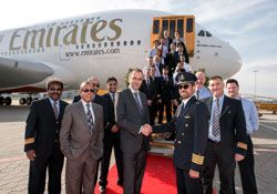 186 uçaktan oluşan filosuyla hizmet veren Emirates, dünyanın en büyük A380 filosuyla halihazırda Amsterdam, Auckland, Bangkok, Pekin, Hong Kong, Cidde, Kuala Lumpur, Londra Heathrow, Manchester, Münih, New York JFK, Paris, Roma, Seul, Şanghay, Sydney, Tokyo ve Toronto seferlerini gerçekleştiriyor. Ekim başında A380 ağına Melbourne de eklenen Emirates, Aralık ayında Moskova ve Singapur’a da A380 seferleri başlatacak. 2013’ün başında Emirates, Dubai Uluslararası Havalimanı’ndaki, dünyanın ilk özel A380 terminali Concourse A ile Dubai’deki operasyonlarını genişletecek.