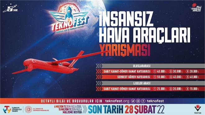 TEKNOFEST Teknoloji Yarışmaları kapsamında TÜBİTAK tarafından bu yıl yedincisi düzenlenecek olan Uluslararası İnsansız Hava Araçları (İHA) Yarışması ve Uluslararası Serbest Görev İnsansız Hava Araçları (İHA) Yarışması ile üçüncü kez gerçekleştirilen Liseler Arası İnsansız Hava Araçları (İHA) Yarışması’na başvurular başladı.