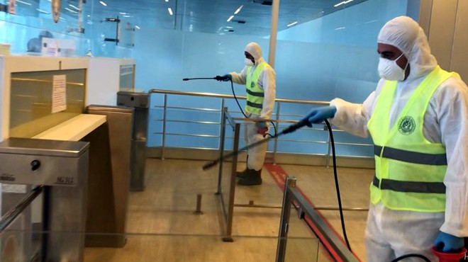 “Havalimanına maskesiz yolcu, ziyaretçi ve uğurlayıcı hiçbir kimse alınmıyor. Girişlerde termal kameralar ile vücut ısısı ölçülüyor. Havalimanında sosyal mesafe görsellerinden yer işaretlemelerine, pasaport ve check-in bölgelerinde koruyucu ayıraçlardan dezenfektan stantlarına kadar tüm önlemler alınmıştır. Havalimanında sürekli anonslar yapılarak yolcuların salgında en önemli üç kural olan maske, sosyal mesafe ve hijyen kurallarına uyulması isteniyor.”