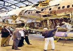 New York JFK kalkışından hemen sonra havada patlayıp iki büyük parçaya bölünerek okyanusa düşen TWA’in Boeing 747 uçağının parçaları kazadan sonra bir araya getirildi.