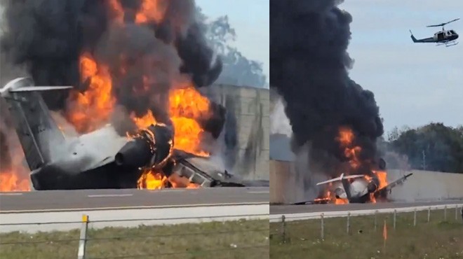 Her iki motoru birden arızalanan Bombardier jet, karayoluna inişte bir kamyonla çarışarak alevler içinde kaldı, feci kazada uçaktaki 5 yolcudan ikisi hayatını kaybetti