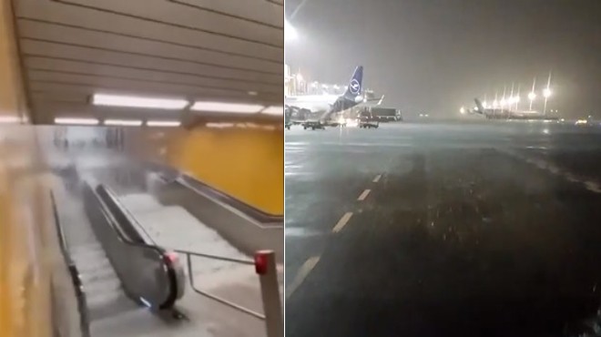 Almanya'daki şiddetli yağışlar Frankfurt Havalimanı'nı da etkiledi. Havalimanının birçok kesimi sular altında kalırken çok sayıda uçuş iptal edildi.