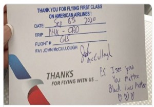 Gezi yazarı ve TV Programcısı Kellee Edwards, American Airlines ile yaptığı br uçuş sonrası kabin memurunun kendisine verdiği bir notla gözyaşlarına boğuldu