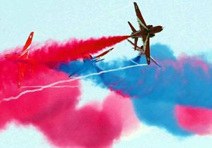 Malta'da yapılan 2013 Uluslararası Hava Şovu çerçevesinde bir gösteri düzenleyen İngiliz Kraliyet Hava Kuvvetleri Akrobasi takımı izleyenleri büyüledi.