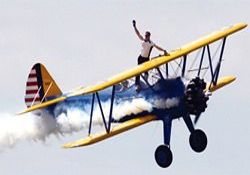 ABD’de bir akrobat, uçak kanadında yürüyüp bir helikoptere geçmeye çalışırken, binlerce kişinin gözü önünde 60 metreden yere çakıldı