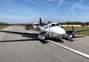ABD'nin Florida eyaletinde iniş takımlarında arıza oluşan Beechcraft B90 King Air tipi uçak gövde üzeri indi