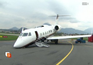 Avusturya’nın Salzburg şehrinde acil durum bildiren Gulfstream 450 tipi uçak iniş sonrası burun üstü oturdu