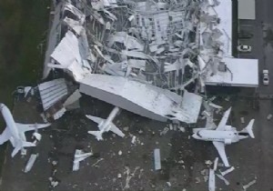 HANGAR JETLERİN ÜZERİNE ÇÖKTÜ
