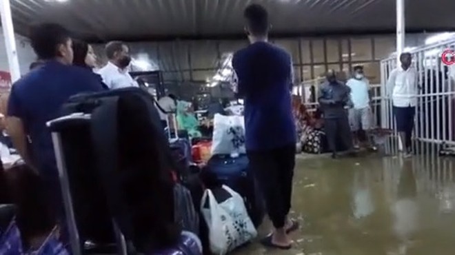 Hartum Uluslararası Havaalanı'nın giden yolcu kapısını da su bastı. Bavulları sular altında kalan vatandaşlar zor anlar yaşadı.