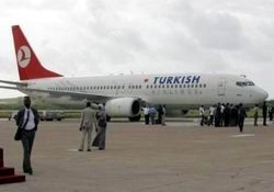 Başbakan Tayyip Erdoğan’ın Somali gezisine eşlik eden işadamları ve gazetecileri taşıyan ve Mogadişu Havalimanı’na inerken köpeğe çarpmamak için çalılarla temas ederek, kanadı hasar gören THY uçağı İstanbul’a getirildi.