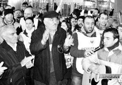 Alevi örgütleri: Hava-iş'in yanındayız… 20’ye yakın Alevi örgütü THY direnişine ziyarette bulundu. Atatürk Havalimanı Dış Hatlar Geliş Terminali’nde 263. gününe giren direnişe destek sürüyor.