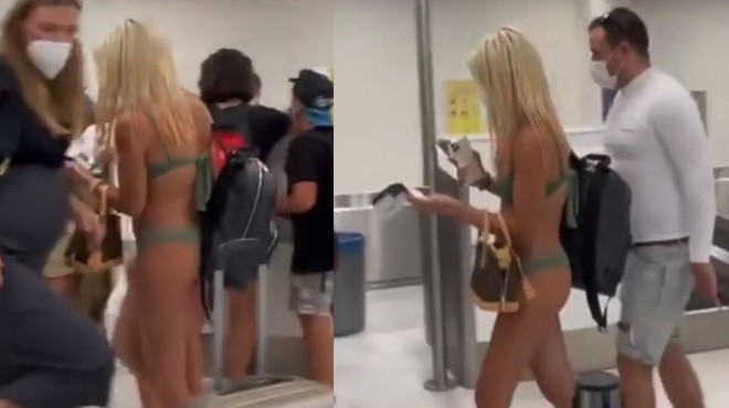 ABD’de bir havalimanında bikiniyle görüntülenen kadınla ilgili video sosyal medyada viral oldu