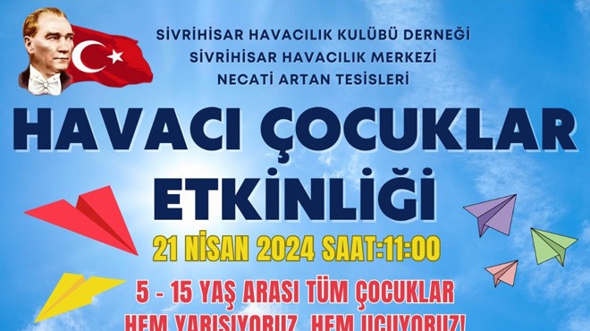 Sivrihisar Havacılık Merkezi, Necati Artan Tesisleri’nde (Eskişehir), “23 Nisan Ulusal Egemenlik ve Çocuk Bayramı” vesilesiyle düzenlenen “Havacı Çocuklar Etkinliği / Kağıt Uçak Yarışması” bu sene dokuzuncu kez organize ediliyor... 21 Nisan Pazar günü gerçekleşecek olan etkinlik, SHM Batı Apronu’nda yer alan M.S.Ö. Hava ve Uzay Müzesi’nde yapılacak.