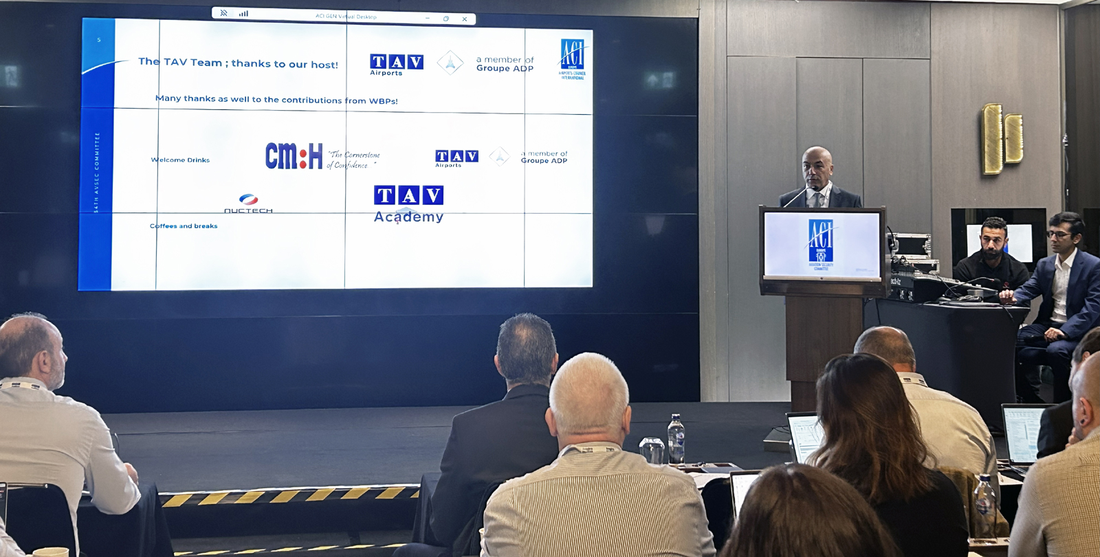 TAV Havalimanları, TAV Güvenlik, TAV Akademi, CMH ve Nuctech’in destekleriyle düzenlenen toplantıda, TAV Güvenlik Operasyonu Müdürü M. Emrah Erkan, İzmir Adnan Menderes Havalimanı’ndaki uygulamalar hakkında bir sunum gerçekleştirdi.
