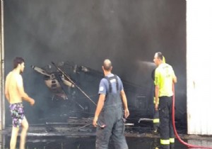 İtfaiye ekiplerinin müdahale etmesine rağmen hangarın tamamen yandığı ve yangının çıkış nedeninin henüz belirlenemediği bildirildi.