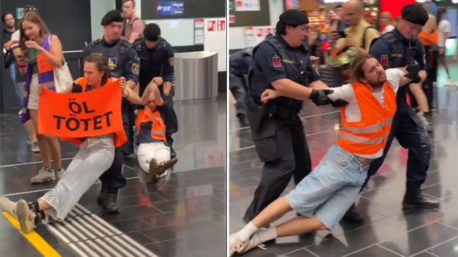 Letzte Generation (Son Nesil) grubuna mensup bir grup iklim aktivisti dün de Viyana Havalimanı'nda protesto eylemi yaptı. Terminalde bulunan bir restoran önünde toplanan yaklaşık 40 aktivist, üzerlerinde fosforlu yelekleri, ellerinde pankartlarla, havaya kağıt parçacıkları saçarak protesto gösterisi yaptı.