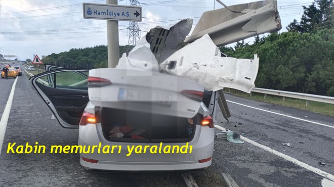 İstanbul Havalimanı yolunda içinde iki kabin memurunun bulunduğu otomobil, sürücüsünün direksiyon hakimiyetini kaybetmesi sonucu bariyerlere ok gibi saplandı. İhbar üzerine olay yerine itfaiye, sağlık ve polis ekipleri sevk edildi.