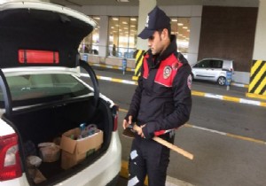 HAVALİMANINA GELEN ARAÇTAN BALTA ÇIKTI