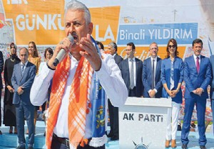 Havaalanının VIP terminalinde düzenlediği mitingle seçim çalışmasına başlayan Yıldırım, denizcilik terimi ile seçim çalışmasını başlatırken, “İlk günkü aşkla fundo bismillah.” ifadesini kullandı. İzmir Adnan Menderes Havalimanı VIP Salonu karşısındaki alana ses sistemli ve barkovizyonlu sahne kuruldu. Miting alanında, ‘AK Parti kazanırsa kimse kaybetmez', ‘Hizmet aşkıyla dağları deldi eleştirdikleri tünelden ilk onlar geçti', ‘Hizmetin kralı, İzmir'in yüz AK'ı' pankartları açıldı. Binali Yıldırım sahneye eşi Seniha Yıldırım ve kızı Büşra ile birlikte çıktı. Boynuna poşu takarak, yaklaşık 5 bin partiliye seslendi. Konuşmasının başında şehitleri andı, terörü lanetledi. Ardından, “Bugünden itibaren 35 günümüz var. İzmir'de yeniden destanlar yazacağız. İzmir hazır mı? Merak etmeyin hizmetlerimiz daha yeni başlıyor. İzmir'in her köşesine bakın eserlerimizi göreceksiniz. Konak Tüneli'ni yaptırmamak için ellerinden geleni yaptılar ama siz de biliyorsunuz tüneli açtığımızda en önde onlar geçtiler. Varsın olsun, bizim hizmetimizde particilik yok. 4 milyon İzmirli bizim kardeşimizdir. Bizim hizmetimiz hak içindir, halk içindir, bütün İzmir içindir.” dedi.