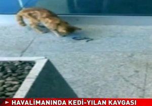 HAVALİMANINDA KEDİ-YILAN KAVGASI