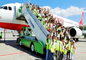 Çocuklar uçakları ve apron araçlarını yakından izleyerek tüm gün çeşitli animasyon ve yarışmalarla heyecan dolu bir gün geçirdi.