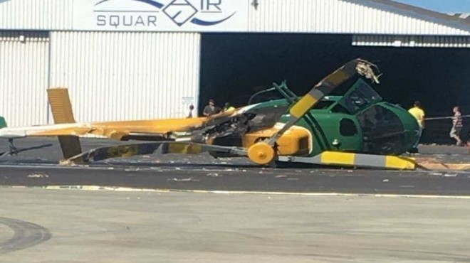 Güney Afrika Cape Town Havalimanında bir helikopter kalkış sırasında düştü, pilot yaralandı