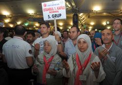 Türkiye’nin dünyadaki havalimanı işletmeciliğindeki en büyük markası TAV Havalimanları, Suudi Arabistan’ın Medine kentinde 2012 yılının ilk hacı adaylarını karşılamaya başladı. Bugün Türkiye’den ayrılan ilk kafilede İstanbul Atatürk Havalimanı’ndan 300, Ankara Esenboğa Havalimanı’ndan 650 hacı adayı Medine’ye uğurlandı. Sekiz gün boyunca Medine’de kalacak hacı adayları ardından Mekke’ye geçecek. Hacı kafileleri 20 Ekim’e kadar Türkiye’den yola çıkacak; dönüşlerse 30 Ekim-29 Kasım arasında gerçekleşecek. Bu yıl Türkiye’ye ayrılan kontenjan kapsamında 74 bin hacı adayı kutsal topraklara gidecek. Diyanetin İstanbul-AHL organizasyonunda toplam 38 kafile ve toplamda 7.600 civarı hacı adayının çıkış yapması bekleniyor.