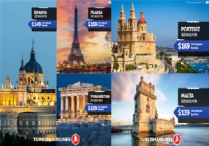 Türk Hava Yolları transfer merkezi İstanbul ile Avrupa’nın sıcak ülkeleri İtalya, İspanya, Fransa, Malta, Portekiz ve Yunanistan’da bulunan 24 destinasyona özel fiyatlar uyguluyor. Sınırlı sayıda koltuk için geçerli olan indirimden yararlanmak isteyen yolcular, İstanbul çıkışlı uçuşlarda  16 Kasım  – 30 Kasım 2017 tarihleri arasında satın alacakları biletlerle 11 Ocak - 21 Mart 2018 tarihleri arasında her şey dahil 129 Dolar’dan başlayan fiyatlarla uçabilecek.
