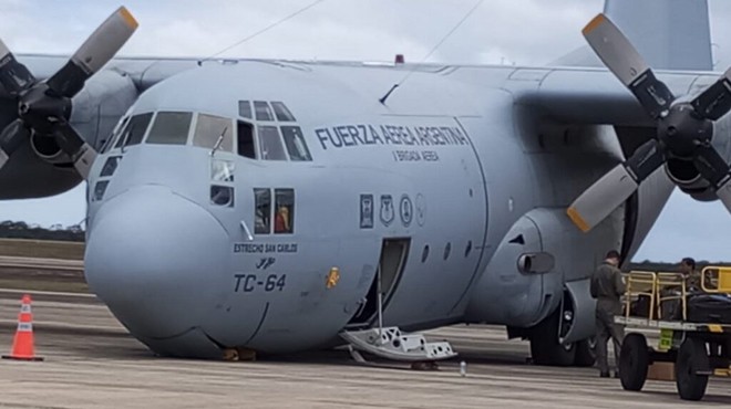 Arjantin Hava Kuvvetlerine ait C-130 Hercules tipi uçağın burun iniş takımı kırıldı