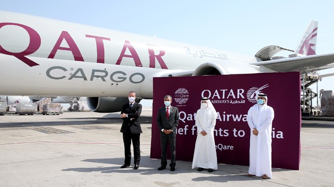 COVID-19 ile mücadele için dünyanın dört bir yanından gelen ve yaklaşık 300 ton ağırlığındaki tıbbi malzemeleri taşıyan üç Qatar Airways Cargo Boeing 777F dün Hindistan'a ulaştı. Qatar Airways Cargo’nun WeQare girişimi kapsamında gerçekleşen üç uçuş, peşpeşe Bengaluru, Mumbai ve Yeni Delhi’ye hareket etti.
