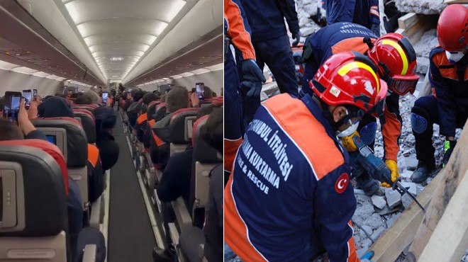 Deprem bölgesinde görevlerini tamamlayarak İstanbul'a dönen İBB Arama Kurtarma ekipleri için uçakta yapılan anons tüm yolcuları duygulandırdı.