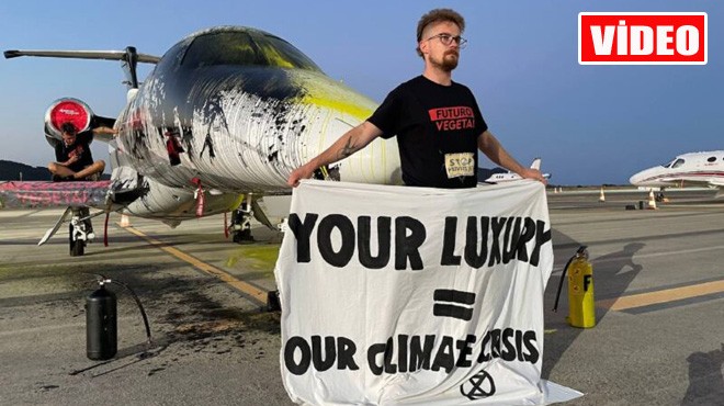 İspanya'nın Balear Adaları'ndaki İbiza Havalimanı'na giren aktivistler, bir özel jeti boyayarak tahrip ettikten sonra ellerini jete yapıştırdılar