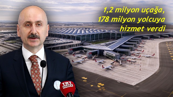 Ulaştırma ve Altyapı Bakanı Adil Karaismailoğlu, İstanbul Havalimanı'nın hizmet kalitesiyle bütün otoriterler tarafından dünyanın en iyi havalimanı olarak seçildiğini belirterek, "Her ay ayrı bir rekor kırıyor. Bugüne kadar 1.2 milyon uçak, 178 milyon yolcu taşıdı" dedi.