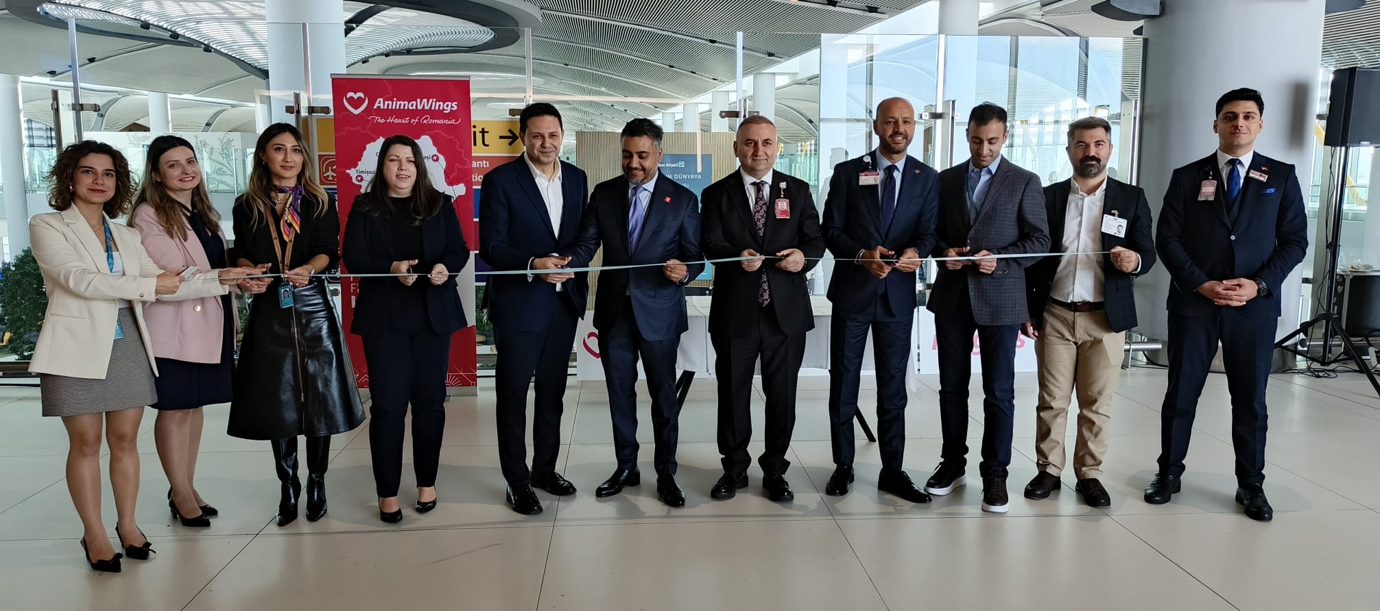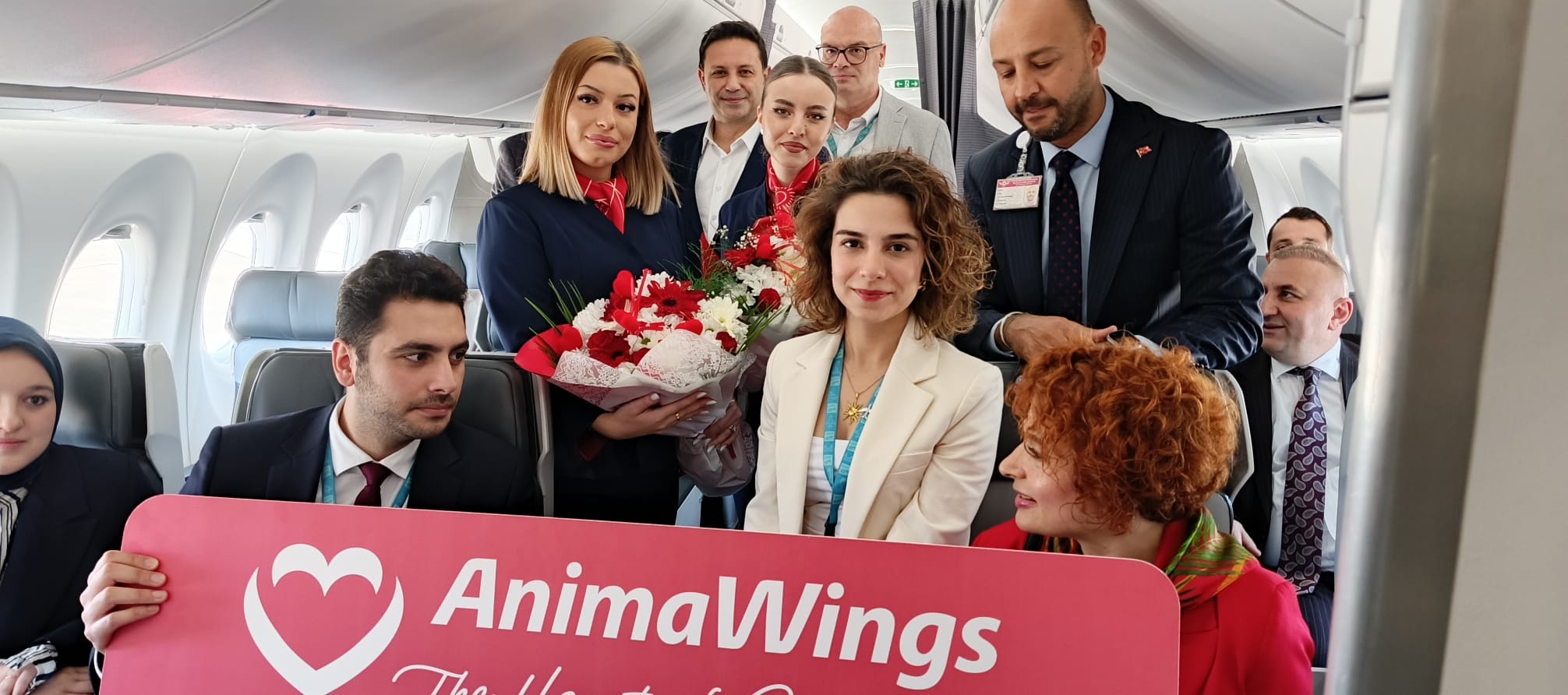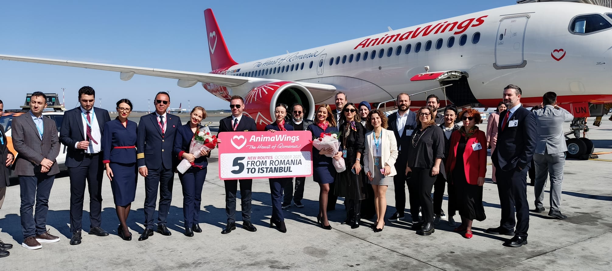 Bükreş'ten Airbus A220 tipi uçakla yapılan ilk uçuş sonrasında İGA İstanbul Havalimanında  Ticaretten Sorumlu Genel Müdür Yardımcısı Server Aydın'ın ve AnimaWings yetkililerinin katılımıyla tören düzenlendi.