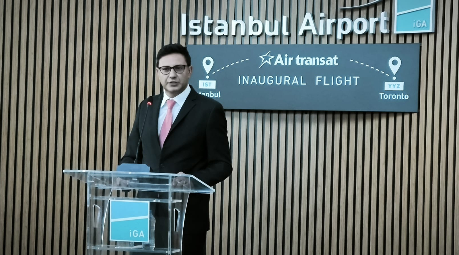 Air Transat ve İGA İstanbul Havalimanı yöneticilerinin katılımıyla düzenlenen özel etkinlikte konuşan İGA İstanbul Havalimanı Ticaretten Sorumlu Genel Müdür Yardımcısı Server Aydın şöyle konuştu: