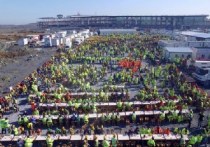 Ulaştırma, Denizcilik ve Haberleşme Bakanı​ Ahmet Arslan, geçen hafta İstanbul’un yeni havalimanı inşaatında yüzde 42 seviyesine gelindiğini, ilk pistin tamamlandığını ve terminal binasının da ortaya çıkmaya başladığını duyurmuştu. Havalimanı inşaatında şu an 23 bin kişi 24 saat çalışıyor ve ilkbaharla birlikte bu sayı 30 bine çıkacak. İşte İGA yönetimi önümüzdeki yakın dönemde gerçekleşecek bu kapasite artışı öncesi tüm çalışanlarla birlikte bir yemek organizasyonu yaptı.