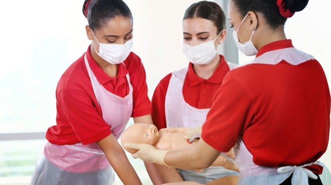 Yeni çalışanlara, hasta simülasyon maketleri üzerinde pratik yaptıkları kalp masajı (CPR) ve Otomatik Harici Defibrilatör (AED) cihazının doğru kullanımı gibi hayat kurtaran beceriler de öğretiliyor. Kabin görevlileri ayrıca özel tasarım bir tıbbi maket üzerinde uçakta nasıl doğum yaptırılacağını ve ölüm durumlarının nasıl yönetileceğini de öğreniyorlar. Tüm eğitimler, Emirates’in Dubai’deki birinci sınıf eğitim tesisi Kabin Ekibi Eğitim Merkezi’nde havacılık alanında sertifikalı ilk yardım eğitmenleri tarafından veriliyor.