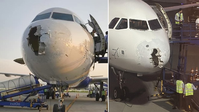 Delhi'den Şrinagar'a giden Airbus A321 tipi Indigo uçağı dolu fırtınasına yakalandı, uçakta hasar oluştu