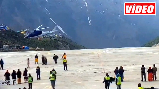 Hindistan'da bir helikopter Himalaya Tapınağı'nda bulunan piste iniş sırasında büyük tehlike atlattı