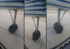 İNİŞTE ÜÇ LASTİĞİ PATLADI