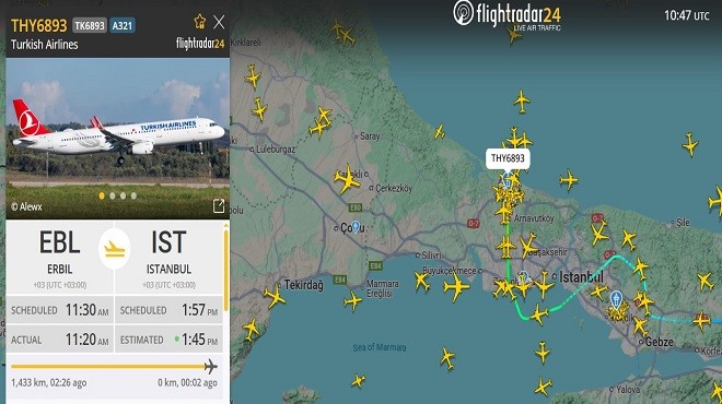 THY’nin TC-JSF kuyruk tescilli uçağı Erbil’den İstanbul Havalimanı'na geldi. THY'ye ait bir başka uçak da ilerleyen saatlerde Bağdat'tan İstanbul Havalimanı'na dönecek.