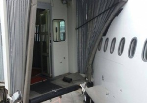 İran'ın özel havayolu şirketi Mahan Air'e ait yolcu uçağı Ankara Esenboğa Havalimanı'nda körüğe çarptı
