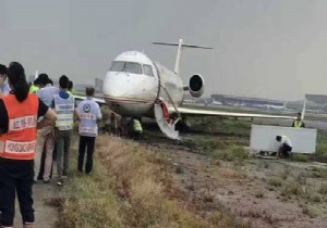 Şanghay Hongqiao Havaalanına inen Canadair CRJ-200ER tipi iş jeti pistten çıktı