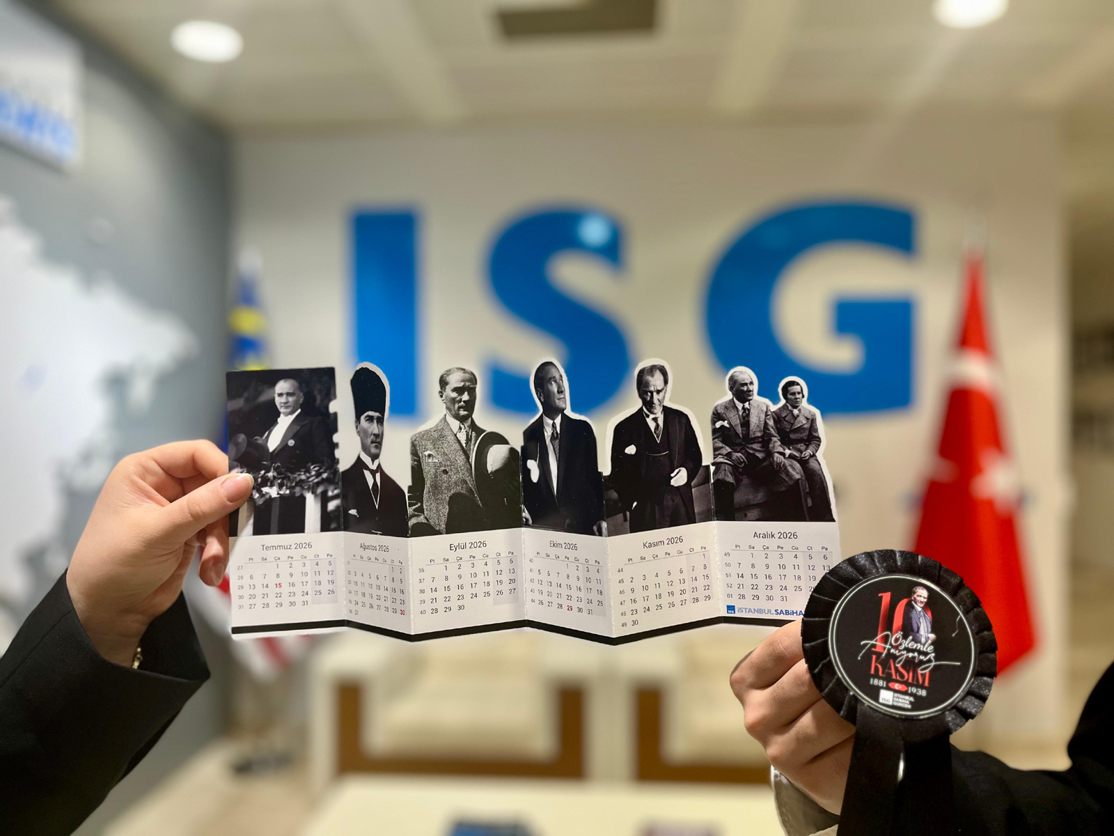 Tören ve fotoğraf etkinliğine katılanlara, Türk halkının Atatürk’e olan bağlılığını ve onun gösterdiği yolda devam etme kararlılığını sembolize eden özel tasarım masa takvimleri Sabiha Gökçen Kurumsal İletişim Ekibi tarafından hediye edildi.
