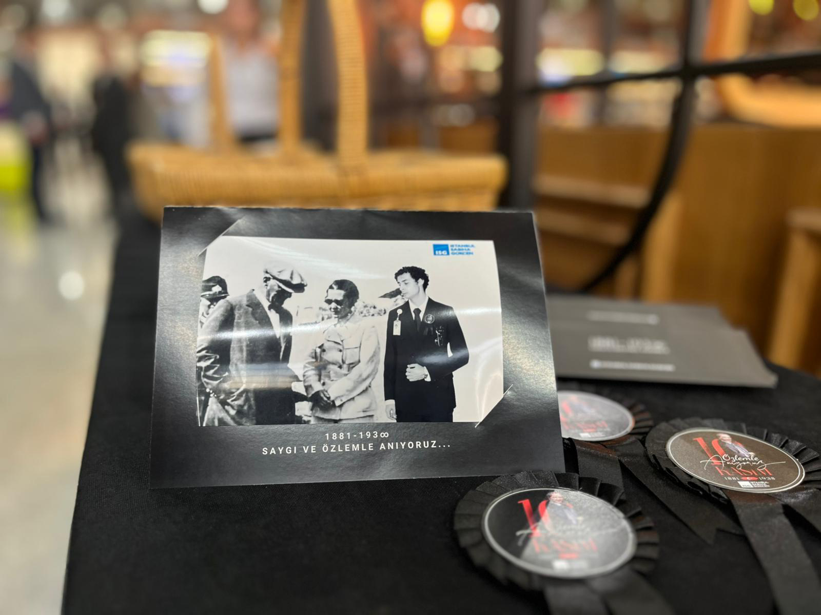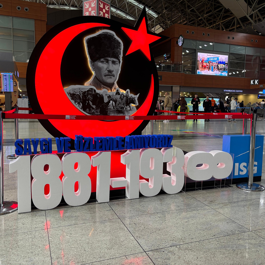 Saat 9'u 5 geçe sirenlerin çalmaya başlamasıyla Atatürk'e duyulan sevgi, saygı ve minnetin göstergesi olarak pasaport kontrolden check-in kontuarlarına tüm terminal genelinde Ulu Önder Mustafa Kemal Atatürk için saygı duruşunda bulunuldu, ardından İstiklal Marşı okundu.