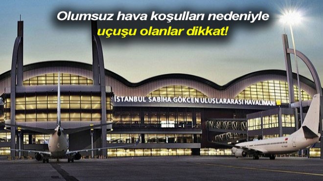 Konuyla ilgili olarak Sabiha Gökçen Havalimanı'nın sosyal medya hesabından yapılan açıklamada, "Sabiha Gökçen Havalimanında beklenen olumsuz meteorolojik koşullar nedeniyle, 20.02.2025 tarihindeki uçuşlar yüzde 10 ve 21.02.2025 tarihlerindeki uçuşlar yüzde 15 oranında iptal edilecektir. Tüm yolcuların uçuşları ile ilgili son durumu, ilgili havayolunun internet siteleri ve çağrı merkezlerinden takip etmesi tavsiye edilmektedir" denildi.
