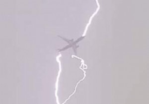 Yıldırım isabet eden Airbus 330 tipi uçağa, yıldırımın isabet ettiği an böyle görüntüledi
